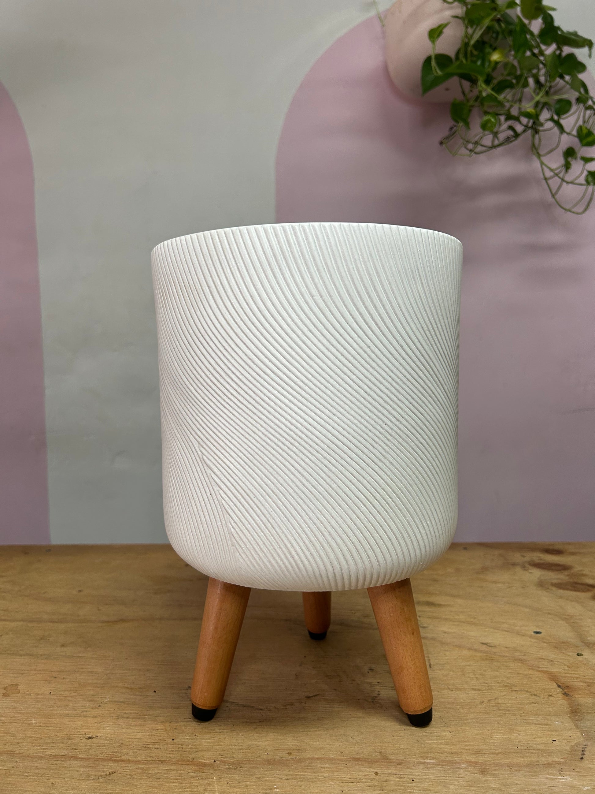 Elevate your plant display with the Helix Tripod Plant Stand, featuring a chic green colour and textured organic lines. Featuring sturdy real timber legs for a stylish, durable addition to any space.